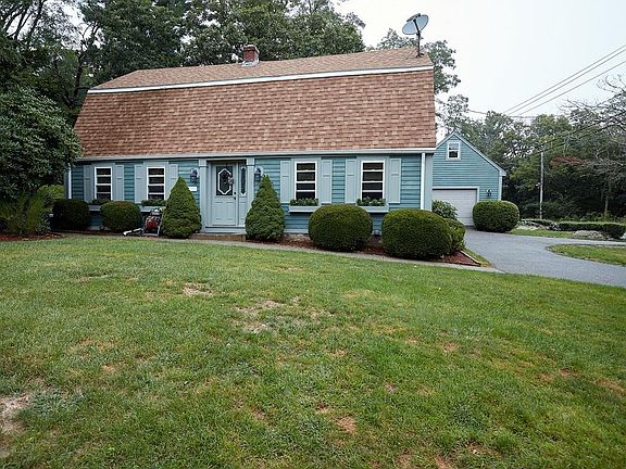 This well maintained Gambrel c1790 is situated on a private, nicely landscaped corner lot with a 2 tier deck (provisions for a hot tub), a nice patio, a circular driveway and an oversized garage/barn with 2 silos and 2 lofts with many possibilities for a studio, antique cars or for a tradesman etc. The 1st floor of this charming home features a cozy living room with a gas fireplace, a galley kitchen with granite counters, s/s appliances and tile flooring which is open to the large dining room, a master bedroom, a good sized office with cathedral ceilings, a laundry room and a full bath.There are 2 large bedrooms, a dressing room & a full bath on the 2nd level. Central Air. Invisible pet fence comprising approx. 1000 sq ft of area. Character abounds!! Motivated Sellers!