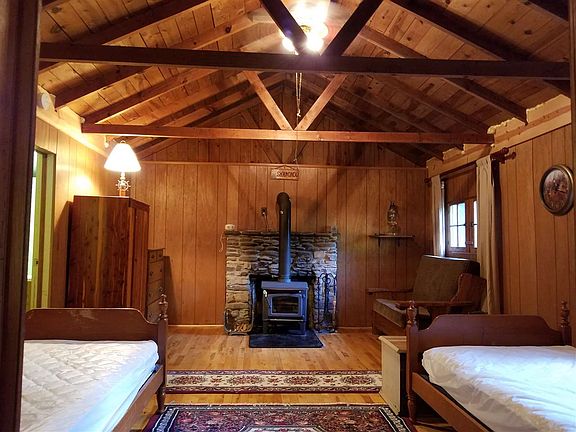 Presenting the ultimate in mountain recreation complete with a very comfortable cabin. Whether for romantic weekend getaways, rugged hunting vacations, or relaxing retreat, this secluded property will not disappoint. Although the cabin has electricity and modern conveniences, it is surrounded by national forest. This is where lifelong memories are made, fathers and sons bond, and knowledge of the wild is passed on to the next generation. The cabin has been beautifully renovated, providing vaulted ceilings and open-space floor plan. New wormy chestnut cabinets and maple hardwood floors compliment the rustic decor. You will enjoy fishing the stocked pond, hunting deer, bear, or turkeys, hiking, or simply reading by the fire.