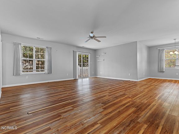 Welcome to this well maintained 55+ community in the City of Swansboro. Kitchen, dining, and living area is an open floor concept. Kitchen has two pantries. Home is classified as a condo. Primary suite has a full bathroom. Second bedroom could have its own private bathroom, but it is located in the hall way. Outside deck is enclosed. HOA covers lawn care and outside maintenance of property. Cabinets in garage will convey as well as washer and dryer.