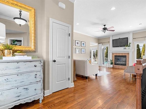 Inside, you'll find tons of natural light throughout with big, bright windows and beautiful plantation shutters. Gorgeous hardwood floors in the main living areas and soothing, neutral paint are accented by sophisticated pops of color and stylish fixtures. The welcoming kitchen opens up to the formal dining area making the perfect setup for entertaining, and both offer scenic views of the dreamiest of backyards complete with a huge patio and a POOL surrounded by privacy landscaping. The gigantic, full basement is partially finished with epoxied floors and endless room to create the perfect entertainment center, game room, home gym, or whatever you wish! Stubbed for a bath and would be so easy to finish out for additional square footage! And the charming built-in playhouse to the right of the stairs stays for you to enjoy. Backup gas heater in the basement will keep you warm and cozy even if you lose power! Welcome home.
