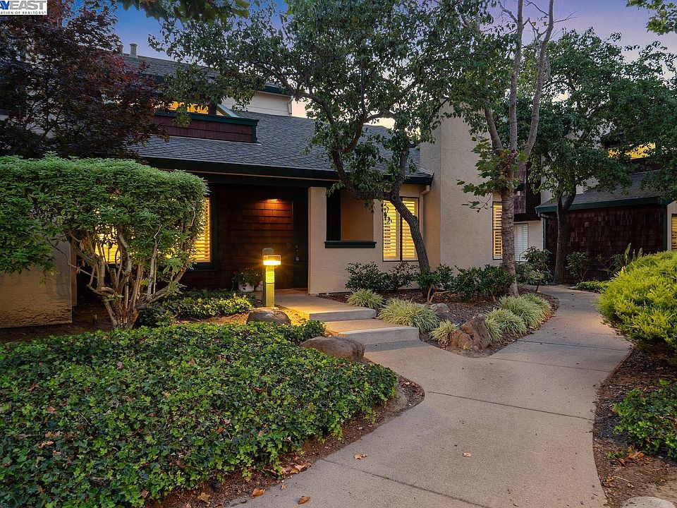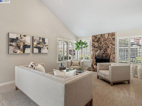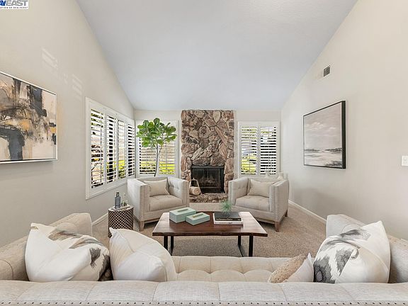 Welcome to 306 Lagunaria Lane, an unusually large contemporary townhouse in a lovely wooded setting. This Baywood Village home is one of a kind--custom designed by the original owner. The unique floor plan features two ground floor bedroom suites. A front junior suite offers a private bath which includes a Roman tub with a new subway tile surround. The rear primary suite has a large mirrored closet and opens to a private patio, creating a serene retreat. Its en suite bath has a stall shower and dual sinks. The open concept living area boasts vaulted ceilings, a stone fireplace and spacious dining area opening to the patio. Kitchen upgrades include composite quartz counters, stainless steel appliances and custom wood cabinetry. Upstairs you will find an additional full bathroom and two bedrooms. The front bedroom opens to a sunny tiled patio with treetop views. A second upstairs bedroom is currently used as a family room/game room, complete with massive stone fireplace, wood paneling and a wet bar. (Groovy, Baby!) Community pool and spa. And the location? Close to top schools, parks, lagoons and the Bay Trail. Neighborhood restaurants offer sushi, pizza, burritos, Starbucks and more. The ferry to SF is a breeze. Community pool and spa and walking paths are a welcome bonus. Sweet!