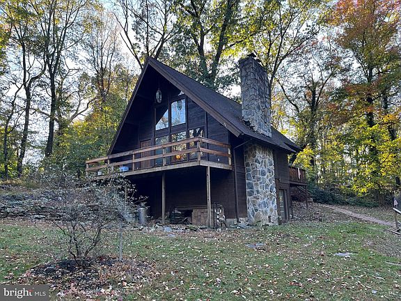 This home is being sold AS-IS to settle estate. Classic A-Frame home on 2.3 acre partially wooded lot in Laurel Estates. Very quick access to Rt 30 Bypass leading to York or Lancaster and next to Sam Lewis State Park. Large porch accesses open living room with stairs to loft area and bedroom. Home features wooden walls and stone fireplace in living room. First floor bedroom opens to two tier wood deck in rear yard. Basement family room with gas fireplace, large closet, full bath and laundry room. Door from this area opens to side yard. Near new propane gas furnace and central air conditioning. Oversize two car garage with second floor for storage-electric to garage and motorcycle lift included. Fenced yard and dog kennel next to garage. Great rustic home in wooded setting. REALTORS PLEASE READ AGENT REMARKS.