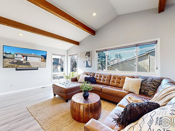 No stone has been unturned in this stunning remodeled bi-level nestled on a sleepy cul-de-sac. An abundance of natural light splashes into the main level featuring LVP flooring, beamed ceiling, multiple living areas (one with gas fireplace!), and a superb galley kitchen boasting stainless appliances, designer backsplash, and quartz countertops. The cozy lower level houses all bedrooms, including the primary bedroom fit for royalty with a chic, refreshed ensuite and private walkout patio. The neighborhood amenities including a pool, tennis courts, and Warren Lake are close by, not to mention everything south central Fort Collins has to offer. You've Landed At The Landings!