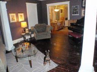 Charming 2/3 bedroom 1 bath home with large level, fenced in lot with Deck & Pool. Hardwood floors, Walk to NYC Public Transportation-Shops-Schools Minutes from Major Highways. The living room is spacious with extra room for a Piano or Computer desk and has architectural columns. The living room flows nicely into the Sunlit dining room and kitchen with built-in hutch (one of a kind!). The Master Bedroom has new French doors leading to its own private balcony! The Basement is partially finished with a family room/office, laundry room and storage.