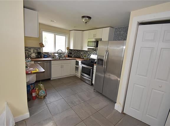 Lovely remodel of this 1/2 dbl on dead end street featuring large fenced in yard, newer siding, newer roof, newer windows, newer gas furnace, brand new kitchen and bath. Kitchen features new semi custom soft close cabinetry, brand new matching stainless steel appliance package, glass mosaic backsplash, walnut butcher block countertops, tiled floor, refinished original wood in the living/dining rooms, custom tiled tub surround, full walkout basement, upgrade brushed nickel lighting, custom paint work throughout. Absolutely turn key. 2018-07-24