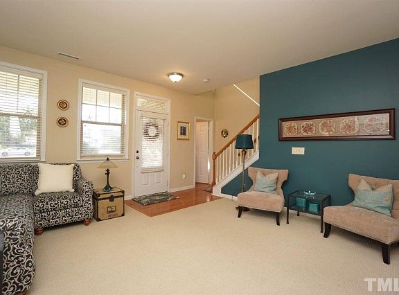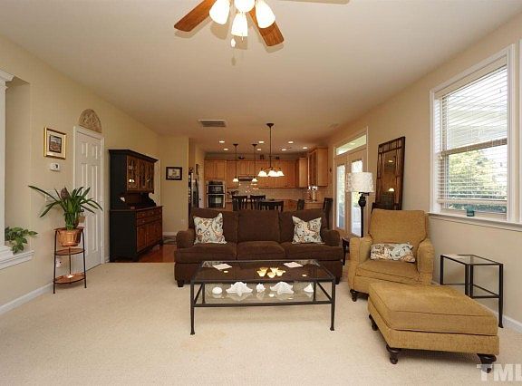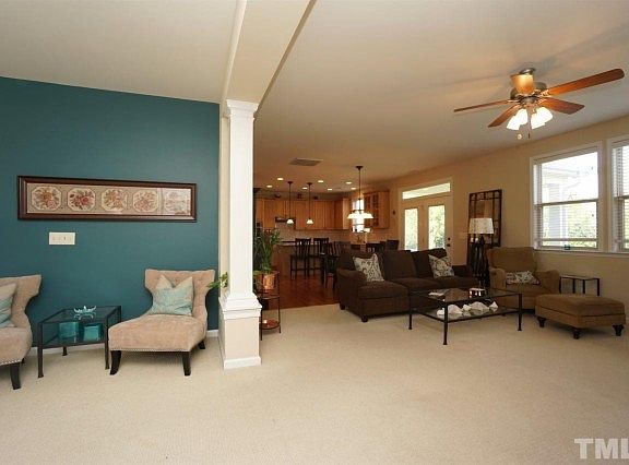 Gorgeous home offers a rocking chair front porch, OPEN FLOOR PLAN w/ Living Rm leading to Family Rm w/ FIREPLACE & Built-Ins. HARDWOOD FLRS! HUGE Kit. w/ MASSIVE Island & Granite Counters. ALL APPLIANCES STAY (incld WASHER & DRYER). Open Dining Area. GREAT FOR ENTERTAINING! Upstairs Loft is great to kick back! MUST SEE MASTER BR w/ AWESOME Mas. Bth (Whirlpool, Glass Shower, Double Vanity) & Walk-In Closet! Laundry Room, PERFECT BACKYARD w/ COVERED PATIO. LOCATION is MINUTES FROM RDU!