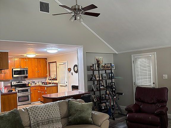 Very nice home located in a quiet neighborhood close to elementary schools. Great family room with fireplace . Two beautiful live oaks in the front yard. Lots of covered parking space. 15x24 storage/shop in back yard. Covered back patio . Fenced back yard with covered 20x24 RV/boat/4x4 etc… storage.