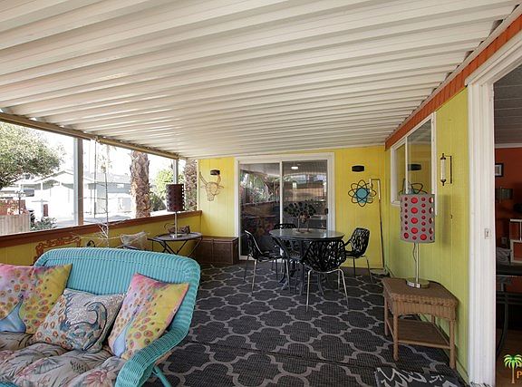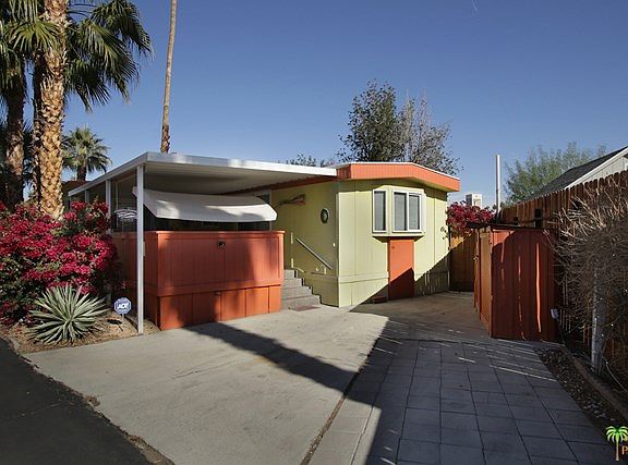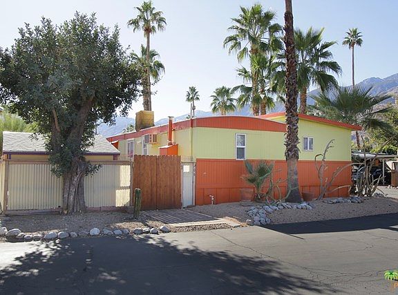 Turnkey furnished 1 bedroom, 1 1/4 bath home offers an open floor plan and is located in the 55+ Ramon Mobile Park. This home has a front patio with views of the mountains and a private back patio and yard with a Shed. Short walk to to Ralphs grocery store, CVS drugstore and Starbucks, library and The MIzell Senior Center. Great for snowbird or a full time residence. Buyer to verify property condition, square footage, monthly rent fee, requirements and eligibility for space rental.