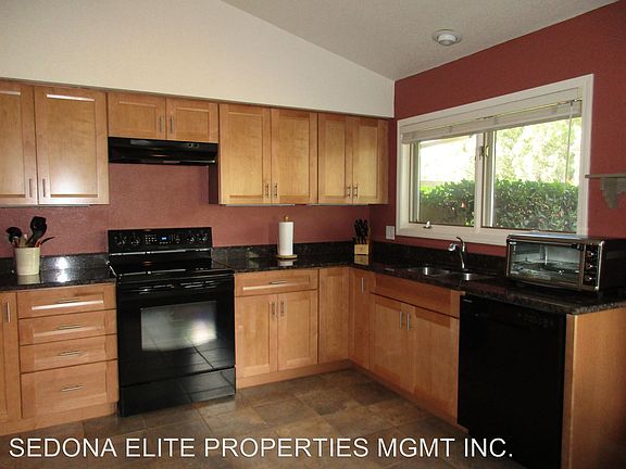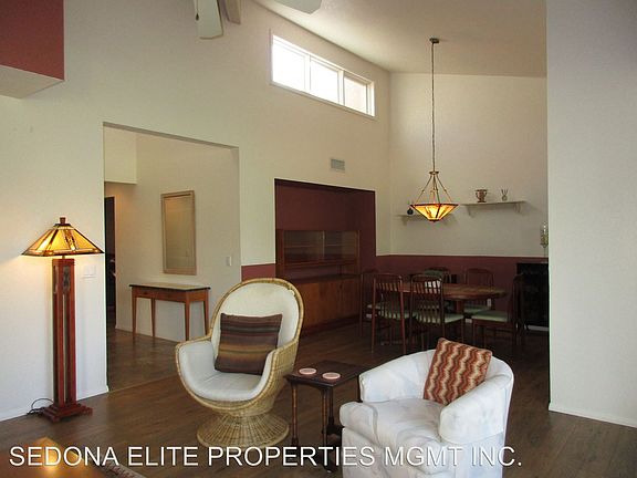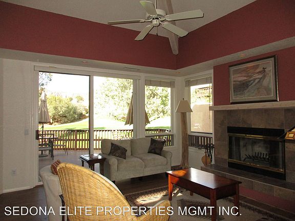 Fully Furnished, Great Red Rock and Golf Course Views, Gated Community - Fabulous 2BR/2BA + Den patio home located in the gated community of Canyon Mesa Country Club in the Village of Oak Creek. Built in 1992, fully furnished, approx. 2,059 sq.ft and skylights. Stunning red rock views and amazing outdoor space. Living room highlights cathedral ceiling, windows streaming in natural light and views of the golf course, ceiling fan and Duraflame wood fireplace. Splendid kitchen with granite counter tops, window above kitchen sink with views of the red rocks, pass through to formal dining room, all appliances and side door to the lovely deck area. Den highlights comfortable seating, flat screen TV and skylight. Spacious master bedroom with two large closets, TV and plenty of storage space. Master bathroom boasts large vanity, two sinks, separate shower and soaker tub. Second bedroom showcases twin beds and desk area. Second bathroom highlights tub/shower combination. Separate laundry room with sink, tons of storage and washer/dryer. Incredible trex deck with views of the red rocks and 9 hole course. Beautiful outdoor seating to relax and enjoy an early breakfast, noon lunch or evening meals. Double car garage. $2,495/mo. Tenant pays utilities of electric and water. No Cats Allowed (RLNE4438179)
