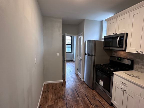 Renovated 2 bedroom 1 bathroom apartment with partial view of NYC Hardwood floors throughout Ceiling fans and baseboard heat Modern kitchen with stainless steel appliances Lots of light throughout apartment Bathroom has beautiful tile stand up shower with sliding glass doors