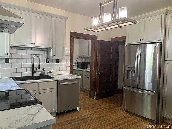 A gorgeous home with original woodwork, hardwood flooring and lead glassed windows! The newly remodeled kitchen adds style and class to this already fabulous home! New counter top, ceramic tile back splash, lighting and new stainless appliances! The back entrance features a mud room with sliding glass doors to the spacious side yard. There is an updated 1/2 bath close by as well as the main floor washer/dryer hookup. The very roomy dining area opens to the living room. The foyer is spacious and opens to French doors to the office. The staircase is wide and grand and leads to both second and third stories of the home. The second story features a nice landing with built-ins, a full bath with a new tub and surround, and 4 very generous sized bedrooms with a surprising amount of closet space! The third floor is now the newly redone master suite with his/her sinks, tile shower and the original hardwood floor! The basement is dry and clean! Landscaping has been done with a retaining wall and perennials! Expanded parking has been created near the 1 car detached garage. There is a lot of under the building storage for outdoor items. Newer updates include new basement windows, a newer boiler and hot water heater, downspouts and gutters. The roof is new and there a have been many other recent updates and improvements!