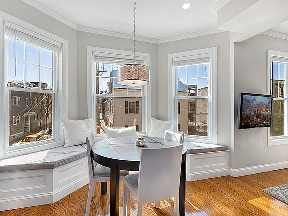 Sun-splashed 2 bedroom condo in desirable Jeffries Point. Open concept floor-plan with 10ft ceilings, crown molding and gleaming hardwood floors throughout. Stunning chef's kitchen with stainless steel appliances and center island. Dining area with custom built-in bay window seating w/ additional storage. Master ensuite, in-unit laundry, excellent closet space, private deck for entertaining, and additional storage in basement. Large common landscaped back yard oasis with fire pit. Walking distance to the T, one stop to downtown Boston, access to water taxi, harbor-walk, 2 minute walk to waterfront and Piers Park, easy access to the airport, and exclusive neighborhood gate pass for easy access to Mass Pike make this condo a must see!