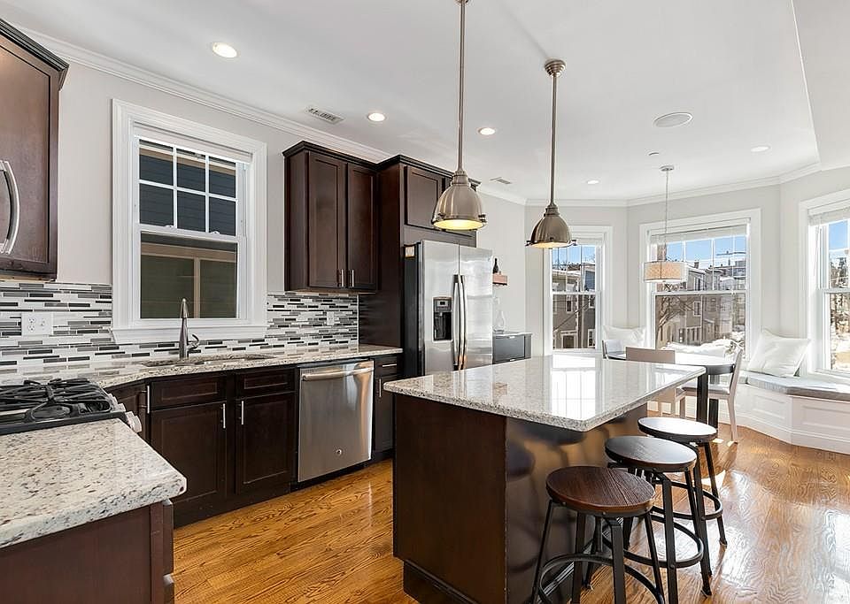 • Kit Dscrp: Flooring - Hardwood, Countertops - Stone/Granite/Solid, Breakfast Bar / Nook, Recessed Lighting, Cabinets - Upgraded, Kitchen Island, Open Floor Plan, Remodeled, Gas Stove, Lighting - Pendant