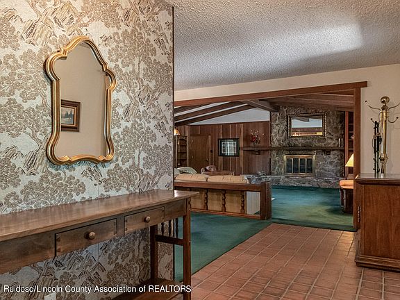 This one level, 4 bedroom /3 bath home is located on a large lot in a well-established neighborhood. Lots of windows bring the outside in and showcase beautiful mountain & valley views to the east and west. The large open concept living, kitchen, dining area provides a great space for entertaining & can be expanded even more by opening up the adjacent sunroom. There is plenty of paved parking and an oversized 2 car garage. A very inviting and comfortable home to live in with ample space for a work from home office. Good closet space. Some updating needed, but is in very good condition and move in ready. Convenient to all Ruidoso amenities, golf course, restaurants, race-track & shopping.