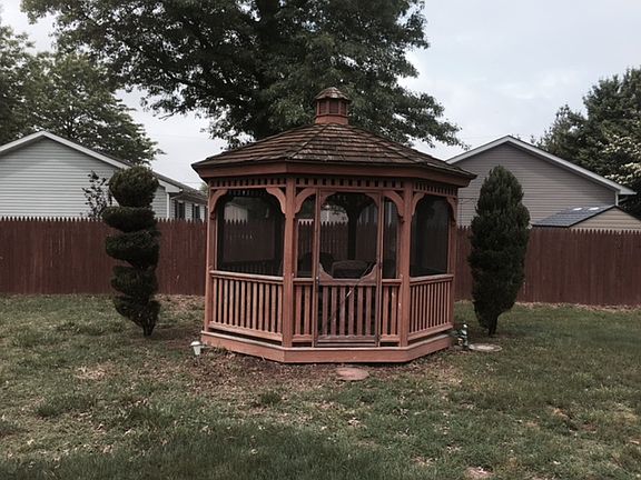 Older made new again! As you walk thru the red front door, you will find a good sized living room that is open to the eat-in kitchen. All new wood laminate floors in the living room, kitchen and hallway. Kitchen has bright and cheery white cabinets with brushed cabinet pulls and granite counter tops to match the brand new stainless appliances. A barn style door from the kitchen leads way to the laundry room that includes the washer and dryer. A pocket door hides the second bath with a shower stall from the laundry room. New laminate tile floor in laundry room and second bath. All three bedrooms have new carpet. Hall bath is beautiful with ceramic tile floor and surrounding the tub/shower.The marble sink looks like a fine piece of furniture. House has been completely painted inside and out and has brand new shutters. Interior updates also include new moldings, outlets, light switches, lighting, doors, HVAC 16 Seer heat pump / central air. Gazebo & shed in the back yard.