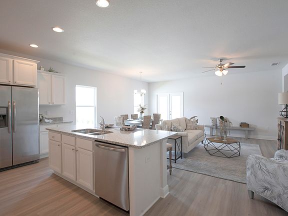 The Kennedy floor plan is a multi-generational offering a separate living quarter with full kitchen, living and dining area, full bath, laundry room and bedroom. This home has 9's ceilings throughout, LVP flooring in common areas and plush carpet in the bedrooms. Additional features of this home include, brushed nickel hardware on interior doors, beautiful light painted cabinetry in the kitchen, granite countertops, designer lighting package and recessed lighting. The main living are of this home has an open kitchen with center island and a standard appliance package that includes a stainless stove, microwave and dishwasher. This is also a Smart Home, which is a standard package that includes an Echo Dot device, Qolsys touch panel, Kwikset keyless entry and Skybell doorbell.