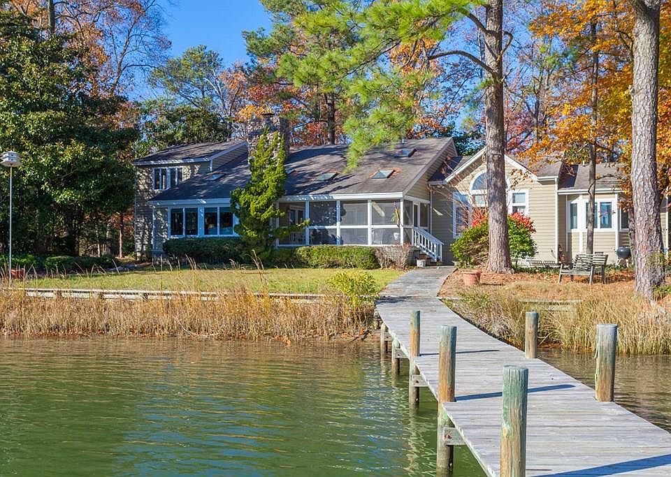 Perfect Waterfront LOCATION! Views over creek out to the Rappahannock River with 5'mlw at Pier. 886' of Waterfront (w/ 500' Rip Rap) at the End of the Cul De Sac...PRIVATE!!! Room to add a pool on this 2+ acre parcel. This Charming Home has coastal features throughout! Most all is Heart Pine Floors! The Living Room has a floor to ceiling Stone Fireplace (wood burning), vaulted ceiling & leads to the sunroom with HUGE Views, built-ins, & stone fireplace (wood burning) plus access to the Screen Porch & Bluestone Patio. The Updated Kitchen has stainless steel appliances & corian counters with open Dining Area having a wet bar with sink & wine fridge. The Primary Suite was added in 1997-8 & features a vaulted ceiling, gorgeous views from the Palladian window, walk in closet with washer & dryer & attached bath with jetted tub & shower. The other Wing has downstairs guest room 1 with access to a half bath, downstairs ensuite WF Guest Room 2 & upstairs Ensuite Guest Room 3. An attached Garage with workbench also has a finished Bonus Room above with built-ins & storage. 11KW Generator. Great Location, Less than 5 Minutes to the Towns White Stone, Irvington & Kilmarnock. Come Play at the RIVER! All Showings start Wednesday 9/15, all offers reviewed Sunday 9/19 by 5PM.