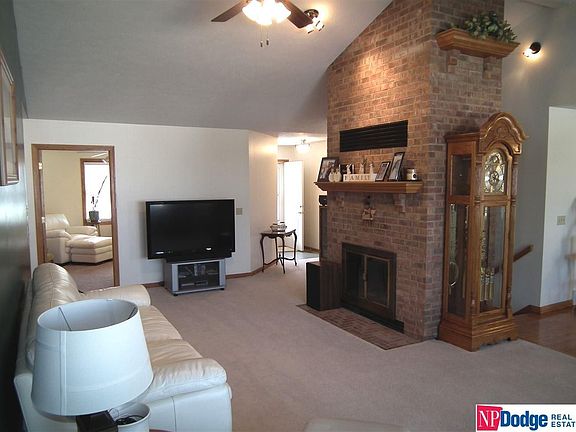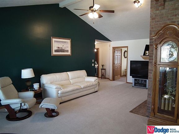 Travis Svendgard, M: 402-533-9911, travis@hometeamnebraska.com, www.hometeamnebraska.com - Lovely, well cared for 4 BR, 4 BA, 2,800+ FSF ranch. Terrific open floor plan! Spacious LR has brick FP & vaulted ceiling. Kitchen has newer SS refrigerator & gas stove & opens to DR with hardwood floors thruout. Tranquil MBR has attached bath with whirlpool. Finished walkout basement has huge family room. Oversized 2 car garage with built-in cabinets. New roof in 2014. New furnace in 2009. Large corner lot with beautiful landscaping & sprinkler system. Scenic views of Missouri River valley!