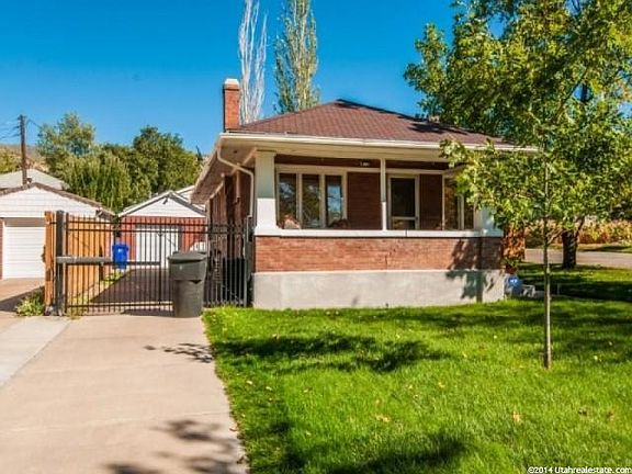 Bring back the past with this quaint brick bungalow built in 1916. This home brags ORIGINAL vintage molding, fireplace, antique front door and hardwood floors. The original windows are protected by new classy storm windows. In living, dining and kitchen matching plantation shutters complete this wonderful historic atmosphere. Kitchen appliances remain. Fully fenced back yard has new delightful redwood pergola over entire patio and is ready for barbecues and family enjoyment. Yard and fruit trees are a plus. Single garage, plus heated double garage full of shelves. Perfect for workshop or art studio. Large charming front porch is perfect for spending time in rocking chairs. Driver has electronic metal security gate. Square footage figures are provided as a courtesy estimate only and were obtained from county records. Buyer is advised to obtain an independent measurement.