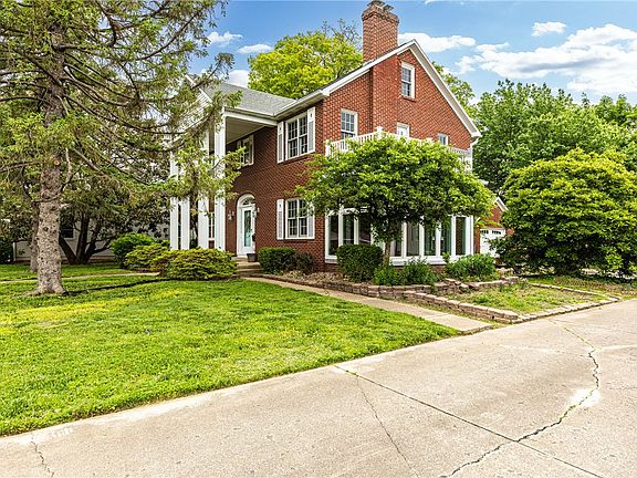 Historical Beauty! Original hardwood flooring, fireplace, main floor bed and bath. Sunroom is not heated and cooled but has been redone with new windows. Balcony above the sunroom has maintenance free deck and vinyl railing with a private entrance from a bedroom on the second floor, a perfect spot to unwind. Hickory cabinetry open kitchen breakfast area. The den includes built in cabinetry or could be converted to a formal dining room. The second floor includes a large laundry, a full bath and three bedrooms. One bedroom has walk-up stairs to a large floored attic which is great for storage or even finishable space. The basement has walk-up steps to the backyard and an older bathroom. Tankless hot water heater, hot water radiant heat and two Central air units. Detached one car garage with a breezeway to the house. Note: the driveway is a driveway, not an alley and is on this prperty. This home is located just a couple of blocks from downtown. Easy and convenient location!