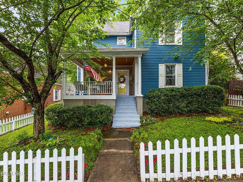 Brand new roof installed in May! Here's your chance to own a piece of Lenoir City History! This beautiful one-of-a-kind 114-year-old home located in the Lenoir City Historic District is now up for grabs within a few blocks of downtown and close to schools, restaurants, and shopping! This well-maintained and spacious home is full of charm and character! You'll love relaxing on the large oversized front porch overlooking the beautiful front yard. As you enter the home, you're welcomed into a charming foyer featuring a gorgeous staircase. This home features formal living and dining rooms, a large den, two (non functioning) fireplaces, both with a beautiful mantle and built-ins, an updated bright kitchen with new stainless steel appliances, a separate laundry room, a huge master suite of your dreams featuring a bathroom with a large walk-in closet, jacuzzi tub, separate shower, and water closet. The home also offers two other bedrooms with the original hardwood floors and another one and a half bathrooms. Ample closet space, ten-foot ceilings, crown moldings in every room, plantation blinds, all new paint and custom lighting fixtures throughout; separate heating and cooling units; a large fenced backyard with a brand new wrap-around deck, as well as a walk-in basement and a separate storage building. Brand new roof in May of 2024. This house is a must-see!