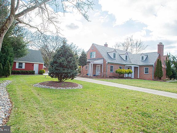 Rare Find - Warm and welcoming, spacious brick cape in Clairmont Village, on a tree-trimmed street of beautiful homes in Salisbury's beloved Camden District. Conveniently located - close to Salisbury University, Tidal Health hospital, shopping, dining and events in Downtown Salisbury. Charm galore inside and out - durable and long-lasting slate roof, copper gutters, wood floors, built-ins, chair-rail and crown moldings - but boasting gorgeous updates including central heat and AC, kitchen, baths, replacement vinyl windows. Dreamy updated kitchen w/granite counters and tile backsplash, stainless steel appliances, pantry cabinet. Large formal dining room w/crown and chair-rail moldings, built in corner cabinetry, wood floors, double-doors out to the brick porch. Living room features a fireplace, built-in bookcases, wood floors, and plenty of room to relax or entertain. Full bathroom with tiled shower, tile floors. A spacious bedroom w/wood floors completes the first floor. Upstairs, 2 additional bedrooms with wood floors, one with a massive walk-in closet / storage / craft room. 2nd updated full bath with wainscoting, granite-topped vanity, custom tile shower and floor. Full, unfinished basement has interior access, and stairs to the outdoors, tons of storage space, laundry area, and a fireplace. Oversized and adorable 1-car detached garage, concrete drive. Pretty yard, part of which is paved and painted as a custom basketball court! Sizes, taxes approximate.