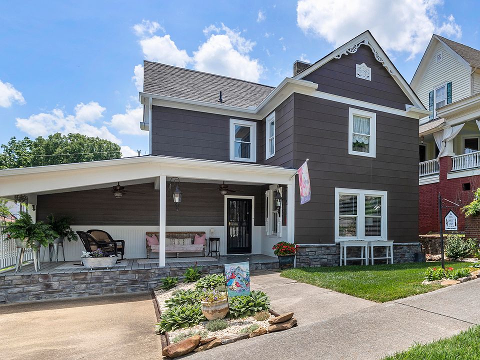 Known as the Earley House, this beautiful 1909 home has been completely renovated to maintain all of it's original character while adding stunning modern touches. The home boasts a large covered front porch perfect for coffee or cocktails, an open floor plan (so rare in historic homes) new kitchen with plenty of work and storage space, an exposed brick fireplace (non-working) as the focal point of the dining and living rooms, main level master bedroom with en-suite bath and walk in closet, and a main level laundry room. Original staircase leads to the 2nd level bedrooms and bath. Finishes throughout accentuating period charm with new electrical, plumbing, kitchen, baths, roof and far too many updates to list. All on a lg level yard in an area of historic homes in Downtown Lenoir City.