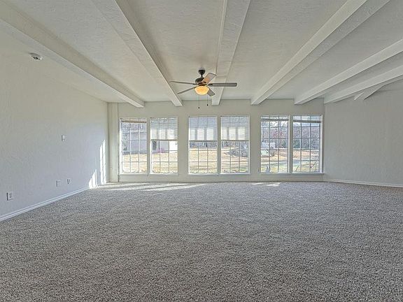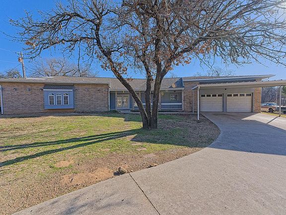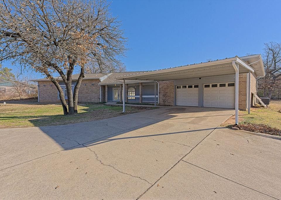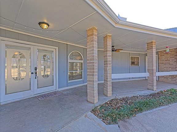 Beautiful 4 bed, 3 full bath home with spacious open floor plan and abundant natural light. Double-door entry, large living area with patio access from both living room and primary suite. This lovely home features stainless steel appliances, granite and concrete countertops, and deep farmhouse sink. Mother-in-law style layout with large walk-in showers and bearclaw style soaking tub. Primary suite includes fireplace, double vanity, walk-in shower, and large walk-in closet. New carpet and fresh paint throughout. Spacious laundry room with storage. Outdoor features include covered patio, in-ground pool, hot tub, storm shelter, mature trees, white picket fence, well house, and storage shed with mini carport. Covered front porch, circle drive, carport, and 2-car garage. No HOA. All kitchen appliances stay. Seller working with insurance to replace roof. This won’t be on market long! It’s a steal!