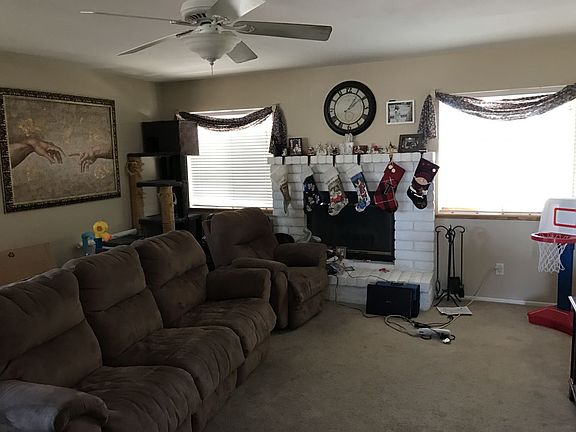 This home was built in 1989. It has a fireplace, dining room, laundry room inside and also 2 full bathrooms. The garage has been converted into a bedroom but has not been permitted. It can easily be converted back into a garage. There are no neighbors directly across the street from you so you have a full view of the mountains and easy access to ride your motorcycle, ATV's, etc. The back yard is spacious with a covered patio. It has a nice new storage shed in back.