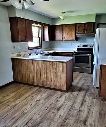 Darling Ranch on corner lot, move in ready! 2 Bed, 1 Bath, deep 1 Car Attached Garage, 930 Sq Ft. Lots of updates, last 5 years it has a new roof, stainless steel stove , dishwasher,2018 new flooring, newer fans in all rooms,new bathroom sink top and faucet 2020, 2019 new furnace, new front storm door. Large master with 2 closets. Refrig and washer/dryer stay. Large septic tank system approx 1000 gal. Mechanical , plumbing and electrical inspection available. Great house just across from the park! Qualifies for No money down Rural Development loans. 13 month home warranty with acceptable offer.