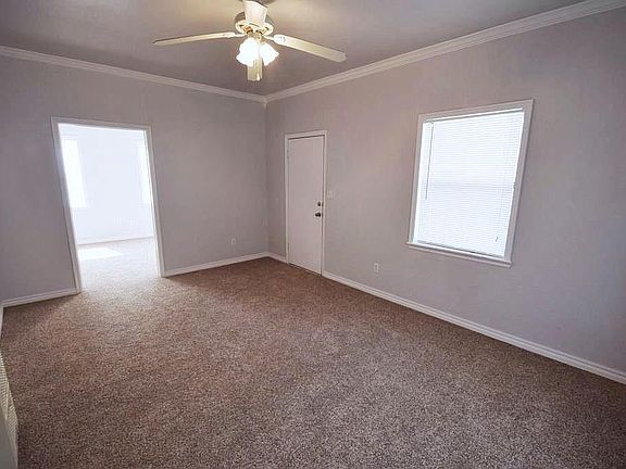 Fixed up, dolled up and ready in downtown Blanchard! This efficient spread has so much to offer inside its quaint walls! Let us take a peek inside! Immediately you will find yourself in a serenely appointed living room, with new carpet and paint that you will also find throughout the home! New tile flooring, modern countertops and freshly painted cabinetry galore will surely make this your favorite space! A sleek back electric range and microwave set it off just perfectly, too! Headed to the master bedroom, in passing you will first find the secondary bedroom. It can serve its traditional purpose, or be transformed into an office, movie room, craft room... the possibilities are endless! Now into the master, again noticing the new appointments of carpet and paint, three windows offer tons of natural sunlight. The master bath dons a beautifully tiled walk-in shower, vanity and throne. Perhaps the best surprise that awaits is the laundry room just off the kitchen, of all things. It is huge, and decked with storage galore! Truly a room, and not a closet! The laundry room also gives you backyard access. Out back, an expansive backyard plays host to a two-car garage painted to match the main house. The great amount of space can handle projects, parties, even a pool! This really is the deal of the decade so give us a call to schedule your private showing before its gone!