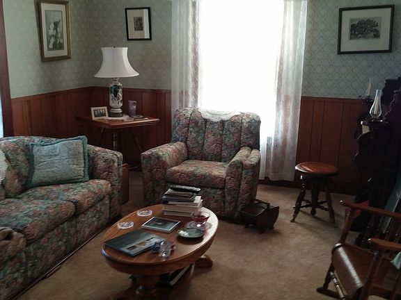 This cozy 1919 bungalow is full of charm. It has original woodwork, big box window in the sitting room and large south porch with swing, making you want to "sit a spell"! The kitchen, laundry room and half of the basement was added on in the mid-1960's. The home has 2 large bedrooms upstairs, bedroom and bath on main floor and office and bathroom in the basement. The house has a large back yard as well as side yard, with many trees, bushes and perennials.