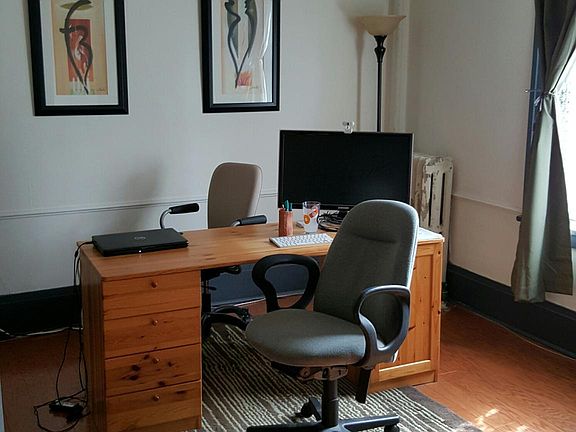Downtown Champaign Classic! 1st floor apartment w/ 1500+ sq. ft. in secure building. 2 large bedrooms plus den with lots of built-ins. Large bath with built-in storage. Front screened porch, back balcony, ornamental fireplace, hardwood floors, exposed brick details, 9 ft. ceilings, and French doors to dining room. Ceiling fans and window a/c. Secure building. On-site laundry. $1230/month includes heat, hot water, and garbage. There's an off-street parking space for rent for $25/month. Owner Managed. Owner pays for heat, hot water, and garbage.