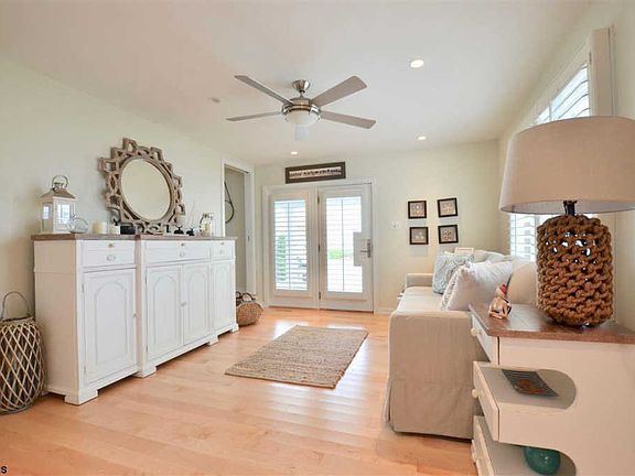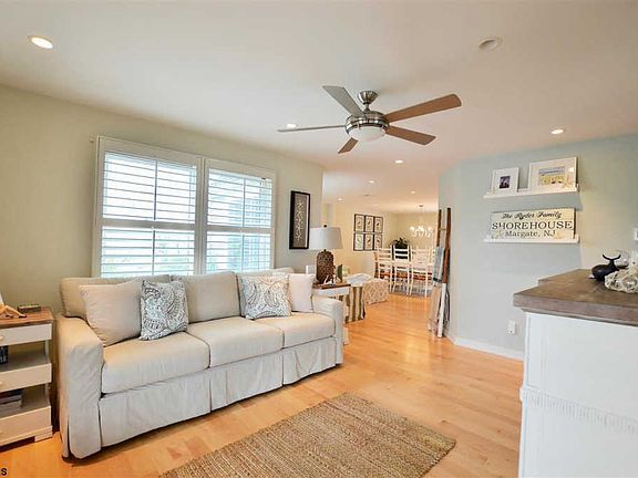 This lovely Margate Cape Cod looks like the perfect beach home from the outside with its expansive outside decks, then once you step inside you enter in to a home of luxury. The current owner has decorated this shore home perfectly that it truly enables the next owner to get ideas of what they can do to make this home theirs. The first floor open layout has a sitting area upon entering the home that leads to a spacious great room with living and dining. There is a two way gas fireplace between the dining and kitchen that adds a cozy tasteful ambiance to the sphere of the rooms. The dining and kitchen both open up to a large back deck and yard with outside shower and tasteful shed. There are two nice size bedrooms and full bathroom on the first floor too. The upstairs leads to an elaborate master-suite with its own private living space, bathroom with make-up vanity and a bonus large private deck with peak of a bay view.