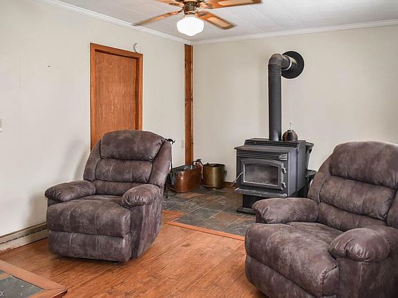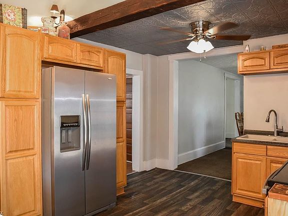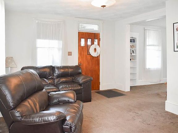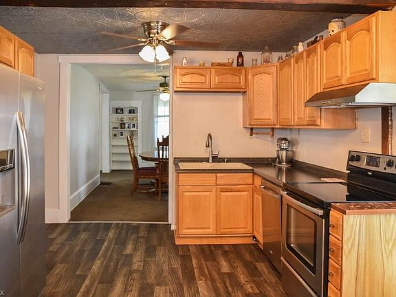 Charming 19th century 3 bedroom home on a double lot with half an acre! Prepare your favorite dishes in the updated, eat-in kitchen with stainless steel appliances, a pantry, dinette and French doors to the patio. It has a beautiful tile ceiling that's partially vaulted with an exposed wood beam! Host holiday dinners in the spacious dining room with built-in shelving and wide baseboards. You can easily fit an 8-seater table here! Enjoy quality time in the formal living room or in the family room with a wood burner on gorgeous slate tile. Pine wood flooring underneath the first floor carpet and original hardwood flooring upstairs in all the bedrooms! Bedrooms 1 and 2 feature lovely wood ceilings original to the home. The full bath offers an updated vanity. Relax on the new enclosed front porch, well insulated for the perfect 3 seasons room! Situated on a double lot, you have fantastic backyard space with a beautiful patio, private deck with a firepit and a large barn for storage. Plus a huge driveway with great parking. Convenient location near schools, parks and shopping. Schedule a private showing today!