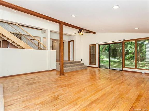 Remodeled Rustic home with a contemporary flair on a large flat wooded lot is calling you home. Convenient location to all that West Asheville offers. New Oak Hardwood Floors in the hall, Kitchen, and Bedroom. Some new lighting fixtures. Brand new contemporary staircase leading to upstairs Bedroom and bath. New Paint, carpet, french drain system, regraded, seeded. etc....Refinished flooring in main living room and master. Easy access to interstate, shopping, and restaurants. Circular drive, outdoor decks, 2 fireplaces, make this home a serene environment. Don't miss this unique home.