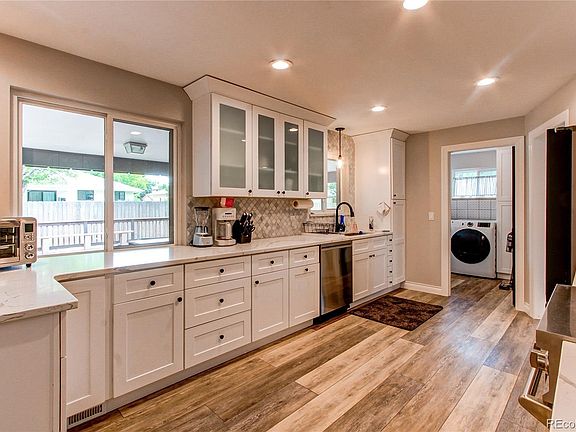 Beautifully renovated large ranch home in the Park East Neighborhood minutes to the University of Colorado Anschutz Medical Campus. This fully furnished house has been meticulously renovated with high end finishes. This home features 4 bedrooms and 3 bathrooms. Luxury Vinyl floors throughout the main floor and basement. 3 bedrooms on the main floor with 1 bedroom in the basement with an egress window for safety. There are two king beds and two queen beds in the bedrooms. Each bedroom has a large closet and additional storage. The kitchen features white shaker cabinets, GE appliances, and quartz counters. The kitchen is fully stocked with all the necessary cooking accessories. The basement has a spacious family room that includes a large couch with dual chaise lounges, large television, foosball table, and amazing kitchenette. The backyard features a large fenced in turf yard, and very large trex deck. Fantastic neighborhood and neighbors. Minutes to the University of Colorado medical center. Quick highway access.