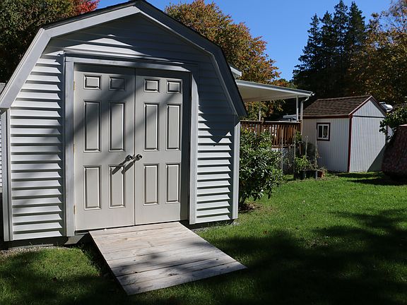 Double lot at Indianfield Campground on Gardner Lake for sale. Camper includes one bedroom, plus loft with room for two large mattresses, plus living area, dining, and kitchen. Each lot has its own hook ups for electric and water. Use the extra space for parking, sitting around the campfire, or to park another camper. Updates include covered composite porch, patio, crushed stone driveway, and custom built shed for all your toys. New roof in 2014. Includes golf cart for easy transport, or walk to the beach! Campground includes laundry facilities, convenience store, garbage removal, picnic and recreational areas. Docks available by application. Lots 124 & 125 sold together.