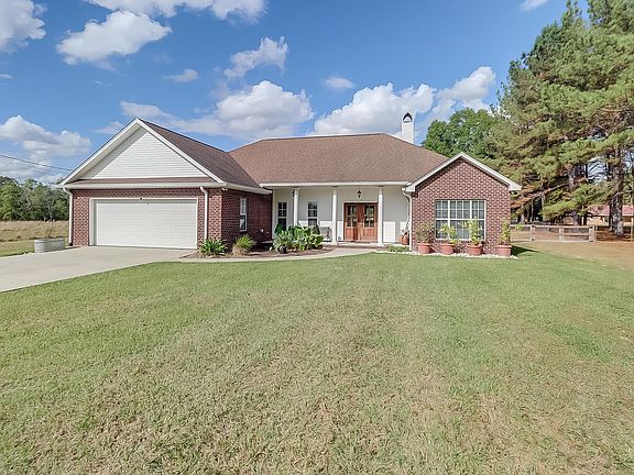 Embrace country living with this charming custom home nestled on nearly 3 acres. This delightful property features a split floor plan, a spacious open kitchen, a large laundry room, and a formal dining area, all complemented by high ceilings and thoughtful design touches throughout. Relax on the expansive front or back porch, perfect for enjoying the peaceful views of both the front and back yards. The generous fenced backyard provides plenty of space to keep a horse or create your dream garden—so many possibilities await. Additionally, the property is equipped with RV/camper hookups, offering extra convenience for adventure seekers. Brand new HVAC installed 2023. Don't miss the chance to make this special property your own; schedule your showing today!