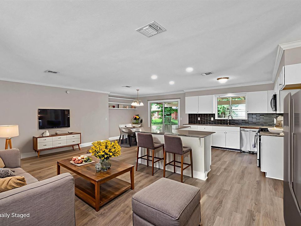 French doorsOversized family roomCovered patioGas stoveGranite counter topsUpdated kitchenNew flooring