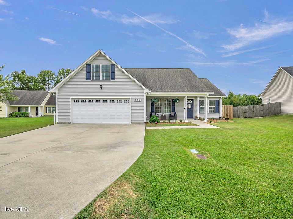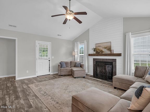 Welcome to your new home in the sought-after Turner Farms community! This beautiful 3-bedroom, 2-bath home sits on over half an acre in a quiet cul-de-sac with no HOA. Inside, you'll find stylish LVP flooring and an inviting layout perfect for both comfort and entertaining. The living room boasts vaulted ceilings and a stunning fireplace with a shiplap surround and floating mantel, creating a warm and modern focal point for the space. The updated kitchen features modern appliances and ample cabinets and counter space, while the spacious owner's suite offers a true retreat with a walk-in closet, soaking tub, separate shower, and dual vanities. Upstairs, the bonus room over the garage is ready to suit your needs, whether it's a home office, playroom, or recreation space. Step outside to enjoy a covered porch and the fully fenced backyard, where mature trees provide privacy and beautiful views. Relax on the charming front porch or make use of the 2-car garage for storage and convenience. Tucked away in Turner Farms with no HOA fees, this home combines privacy, comfort, and convenience all on a spacious lot that's perfect for outdoor living.