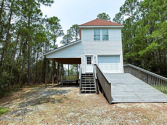 Welcome this spacious 2,000+ sq ft home boasts 3 bedrooms and 2 ½ bathrooms waterfront home! Nestled along the banks of Campbell Creek, just off the Intracoastal Waterway (ICW), this stunning 5 acre property offers panoramic water views, a deep-water dock, and a detached shop/studio. With its open floor plan, beautiful surroundings, and convenient access to the ICW, this home is a boater's paradise and a tranquil retreat. Step inside and be greeted by the Great Room, featuring a soaring 19' ceiling, creating a sense of grandeur and spaciousness. The main level master bedroom and the Great Room both open to a screen porch, yard, and the waterfront, allowing you to seamlessly blend indoor and outdoor living. Imagine waking up to breathtaking views every morning! The upper level of the home features two bedrooms and a full bathroom, ensuring plenty of room for family or guests. Extensive decking wraps around the house, providing multiple outdoor spaces to relax, entertain, and soak in the picturesque surroundings. One of the highlights of this property is the detached shop, built in 2012. It offers a 24' x 16' space, complete with a shower bath. On the second level, you'll find a finished ''studio'' with HVAC, perfect for use as a home office, art studio, or guest suite. The covered space provides room for your boat, car, or camper, protecting your vehicles from the elements. Your private dock with a boat slip awaits your vessel, allowing for effortless boating adventures. Campbell Creek is renowned for its fishing, and the Smith Creek boat ramp is conveniently located just a mile away. Whether you're a boating enthusiast seeking a water lover's paradise or simply looking for a serene retreat to relax and unwind, this home offers it all. Don't miss the opportunity to make this extraordinary property your own!
