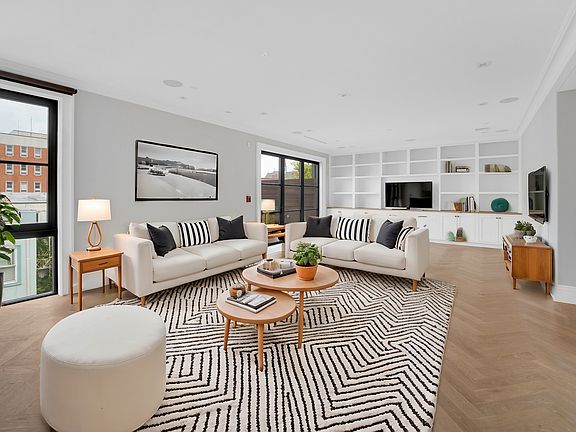 NO BROKER FEE (Effective rent of $10,615 as a result) Available immediately, this stunning 3BR / 2.5 bath apartment is the Penthouse unit of the 4-unit Fig Tree Condominium. Located on a quiet, tree-lined street within walking distance to Church Square Park, Hoboken Station, bus stops, parking garages, schools, and many fine restaurants, this bright and spacious apartment would be deal for a couple or a larger family. With 2,109 sf of interior space, the unit boasts three skylights and two outdoor spaces: a 407 sf private roof deck with direct elevator access and breathtaking NYC views, ipe decking, a fire pit, a built-in Wolf BBQ, with accompanying sink and refrigerator - as well as an 88 sf terrace accessible from the living room through accordion glass doors with sliding screens. Unit-wide features include high-efficiency HVAC, white oak herringbone floors, custom cabinetry, elegant window casings, crown molding, and recessed LED lighting throughout. A multi-zone SONOS system with built-in speakers has also been installed. Dual walk-in closets complement the spacious master bedroom. The kitchen is equipped with a Wolf stove, Subzero fridge, Asko dishwasher, and Quartzite counter tops. The 2 full bathrooms feature heated floors and towel bars. The laundry room contains a full-size Maytag washer/dryer and utility sink. The lobby offers a bike storage rack and direct elevator access. Last month's rent due at signing Owner pays water Renter is responsible for gas, electric and personal broadband No smoking allowed Up to three pets total allowed