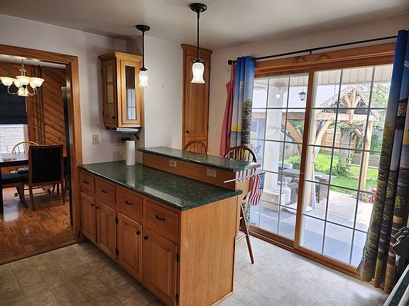 - Description: Laminate, dining area, stone fireplace w/woodburner insert