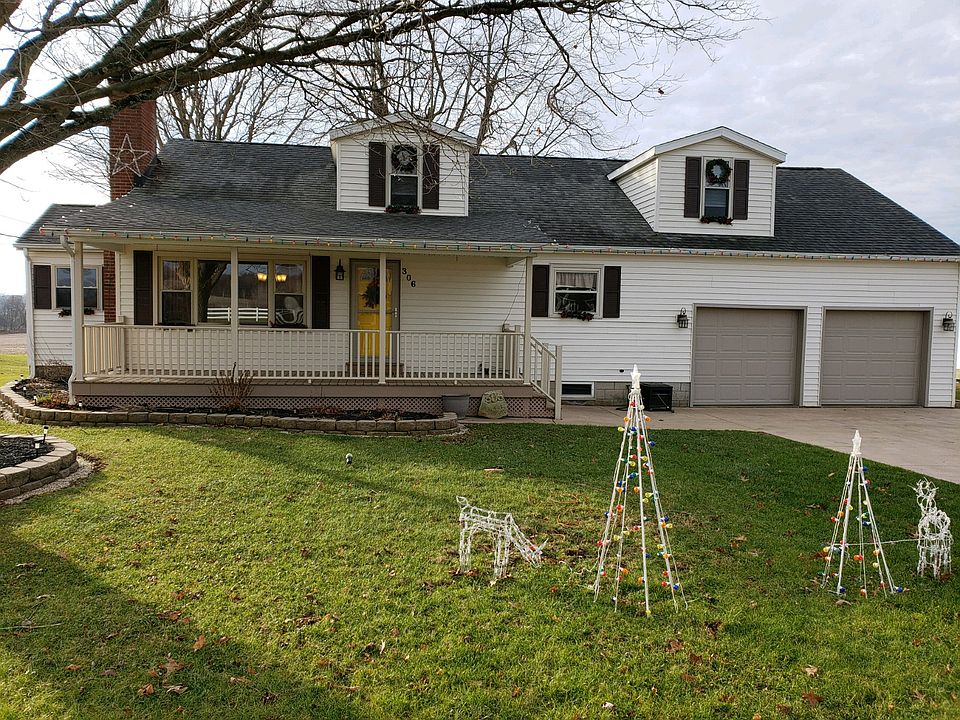 Beautifully updated approximately 2400 sq ft house located in Danville Ohio. This home features 3 spacious bedrooms and 2 full baths. Master walk-in closet with built in make-up area. 6 panel doors and poplar trim throughout. Concrete driveway and covered front porch. Large kitchen and dining room with maple cabinetry, granite counter tops and ceramic tile. Dining room features original oak floors, built in desk and gas log fire place. Off dining room is a small bonus room. Large living room off dining and kitchen area with sliding door to nice deck and fenced in backyard. Mud room with coat closet leads to a 22x45 ft deep 3 car garage with pit. Full basement partially finished with lots of storage.