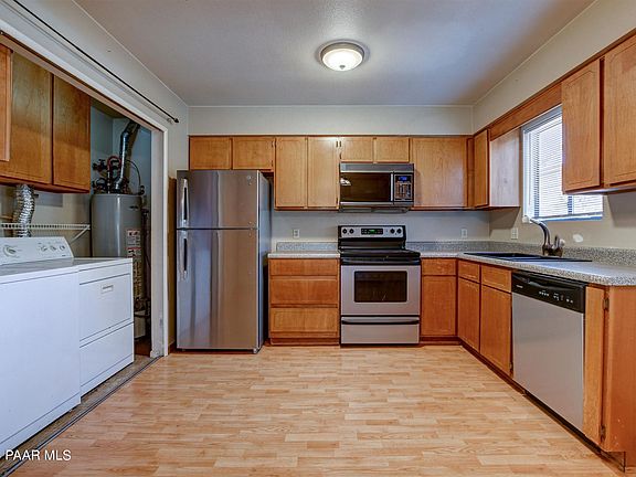This adorable townhouse is the perfect blend of comfortable living, choice location and affordable price. Just moments from downtown Prescott. Home includes a beautiful kitchen with nice appliances and wood floors, bright and cheerful living area and 2 spacious bedrooms upstairs. Covered porch, rear entrance, 1 car garage, and storage space also a plus.