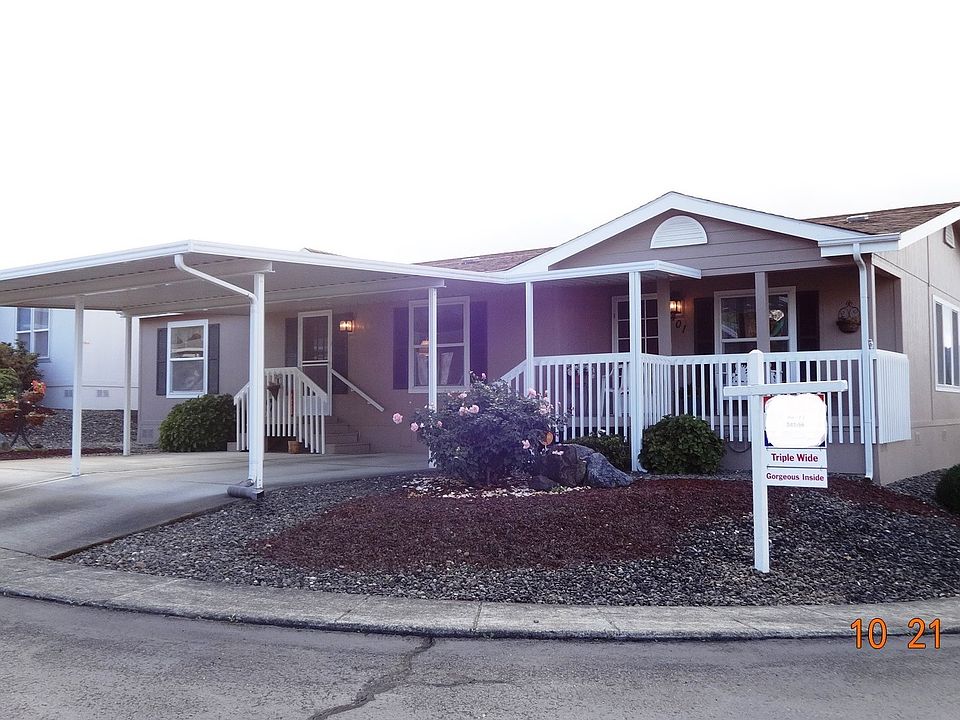 Spacious triplewide in desirable Riverview Estates. 55+ community conveniently located close to medical, shopping and entertainment. Corner lot with low maintenance landscaping, covered decks, and double carport. Heat pump for year-round comfort. Schedule your private tour today!