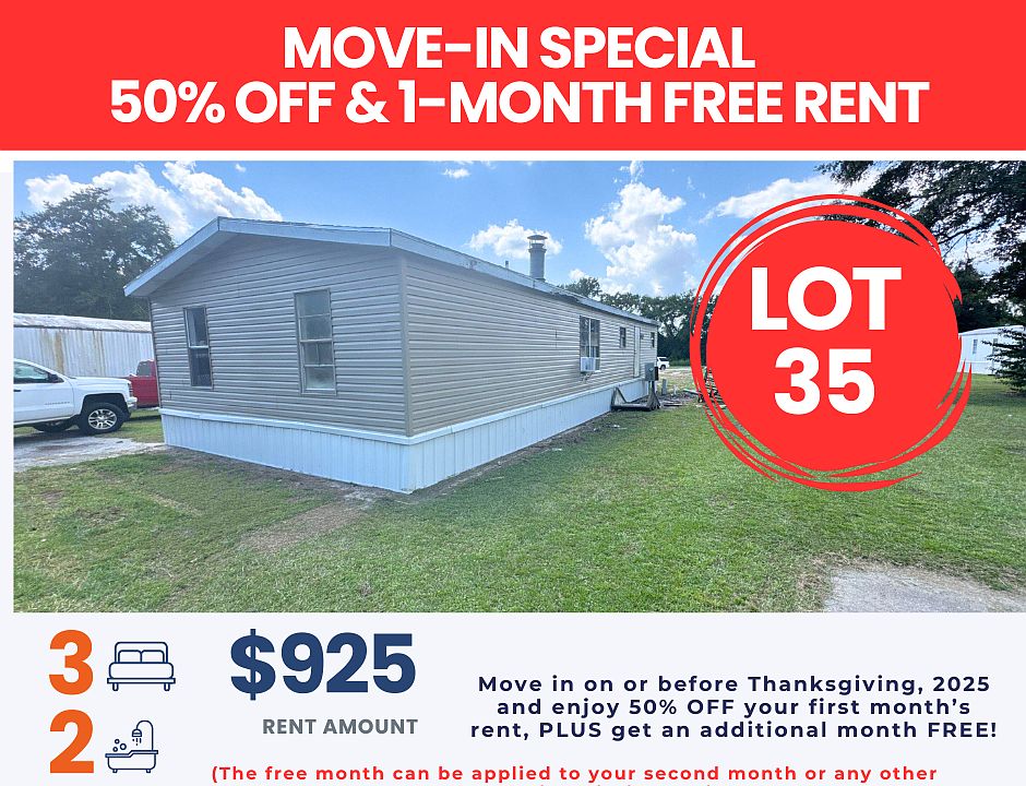 Now Available Move-In Ready Home in Cordele, GA! Looking for a fresh place to call home? This cozy mobile home is ready for move-in and available for rent. Each home sits on its own spacious lot, giving you privacy and room to enjoy all without the high cost of traditional homeownership. Located in Cordele, Georgia, a quiet and friendly town with easy access to schools, shops, and major roads. We'd love to help you find your next home whether it's for now or the long haul. Ready to rent? Message us! Annual Lease Base rent: $925 Lawn Fee: $20 Water Maintenance Fee: $50 and Sewer Fee: $25 Total Monthly payment: $1,020.00 All 18+ occupants are required to have a credit and background check Pet Policy No smoking Policy Move-In Made Simple! To move into your new rental home, the upfront cost is just: First month's rent Security deposit equal to one month's rent That's it no hidden fees, no surprises. Ready to make the move? Message us today to get started! Annual Lease Base rent: $925 Lawn Fee: $20 Water Maintenance Fee: $50 and Sewer Fee: $25 Total Monthly payment: $1,020.00 All 18+ occupants are required to have a credit and background check Pet Policy No smoking Policy