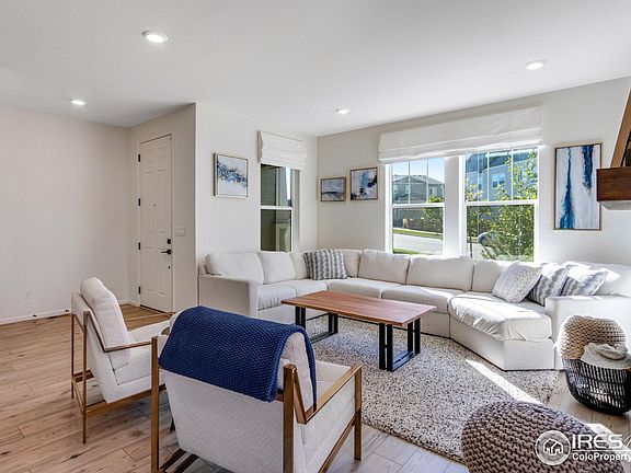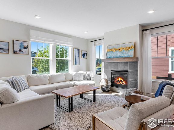 Stunning 4-bed, 4-bath duplex in desirable Colliers Hill in Erie offers the perfect blend of modern upgrades, comfort, and unbeatable location! You might mistake this home for one of the models as you walk into the beautifully designed, open main level! A great feature of this home is the luxurious kitchen that includes a large peninsula with granite countertops, soft close cabinets and upgrades to the stainless-steel Whirlpool appliances and lighting. Upgraded luxury vinyl plank flooring adds warmth and durability, while the convenient up/down blinds provide both style and privacy. You will enjoy sitting in your living room next to your gas fireplace and looking out over the quiet park just across the street. The upper level includes two spacious secondary bedrooms, a full bathroom, loft and a gorgeous primary suite with breathtaking mountain views, a large walk-in closet, and a luxurious 5-piece bath. The home's fully finished basement provides a great additional entertaining space, along with a nicely-sized bedroom and bathroom-ideal for guests. The luxury continues outside with the beautiful stamped concrete patio and the low maintenance of the fully xeriscape yard. Across the street from the peaceful park, the home's positioning captures great views and extra charm. The 2-car alley-loaded garage offers convenient access and curb appeal. Colliers Hill residents enjoy an exceptional lifestyle with two community pools, a large clubhouse, and miles of scenic trails, including a new trail that will connect directly to Old Town Erie. Located near Erie High School and Soaring Heights, this home is also just minutes from the future SVVSD elementary school and a planned town park. Plus, a new nearby shopping center with dining options has already broken ground and is only about half a mile away. With all of Erie's exciting new amenities and developments on the horizon, this home is an incredible buy in one of the area's most sought-after neighborhoods!