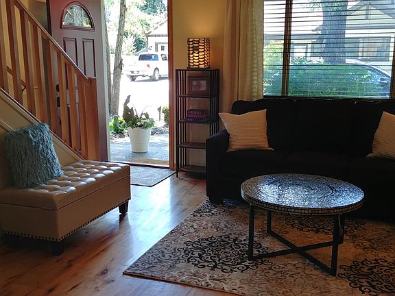 Beautiful townhome in perfect downtown Coeur d' Alene location. Large bedroom, with queen bed, plus full sofa sleeper in living and single futon in loft. Bath with jetted tub up and 1/2 bath down. Beautifully appointed kitchen with gas range. Gas fireplace and large screen TV in living room. Laundry, private patio and 1 car garage. All this 2 blocks from library, Tubbs Hill, McEuen Park. City and Sander's beaches and all that central CDA has to offer All utilities except lights and heat. Includes internet.